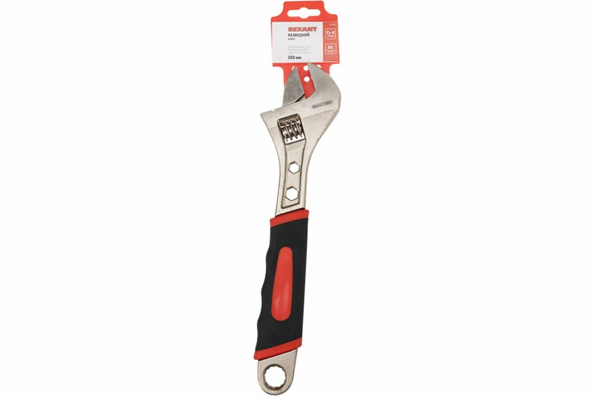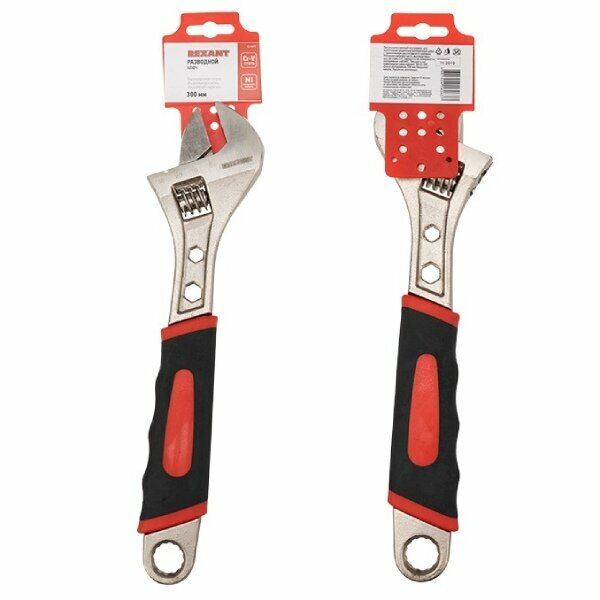 Купить Ключ разводной Rexant 300мм, никелированный, двухкомпонентная рукоятка