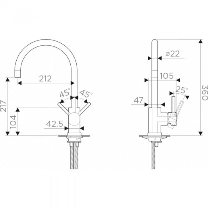 Смеситель для кухни OMOIKIRI Wakayama-BN с поворотным изливом / нержавеющая сталь