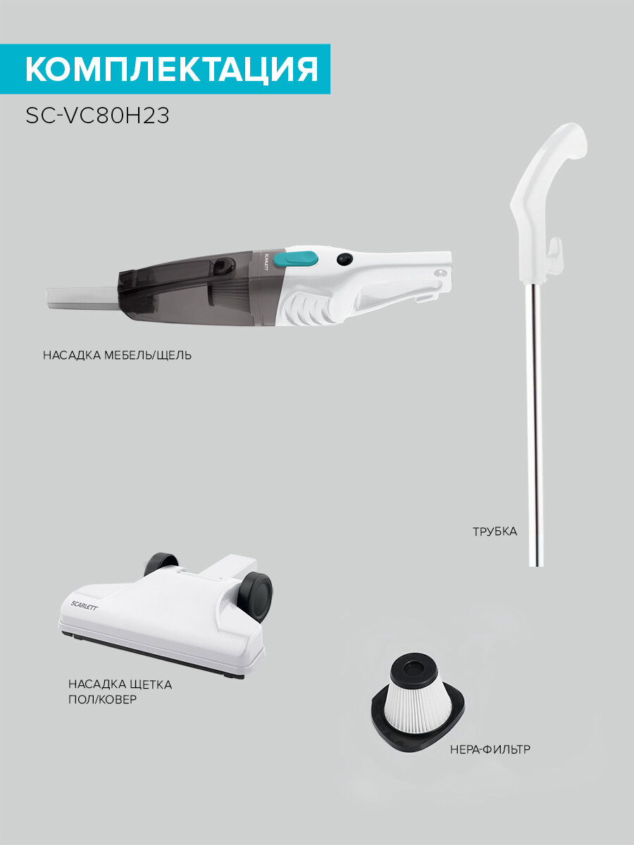 Пылесос Scarlett SC-VC80H23 белый с бирюзовым