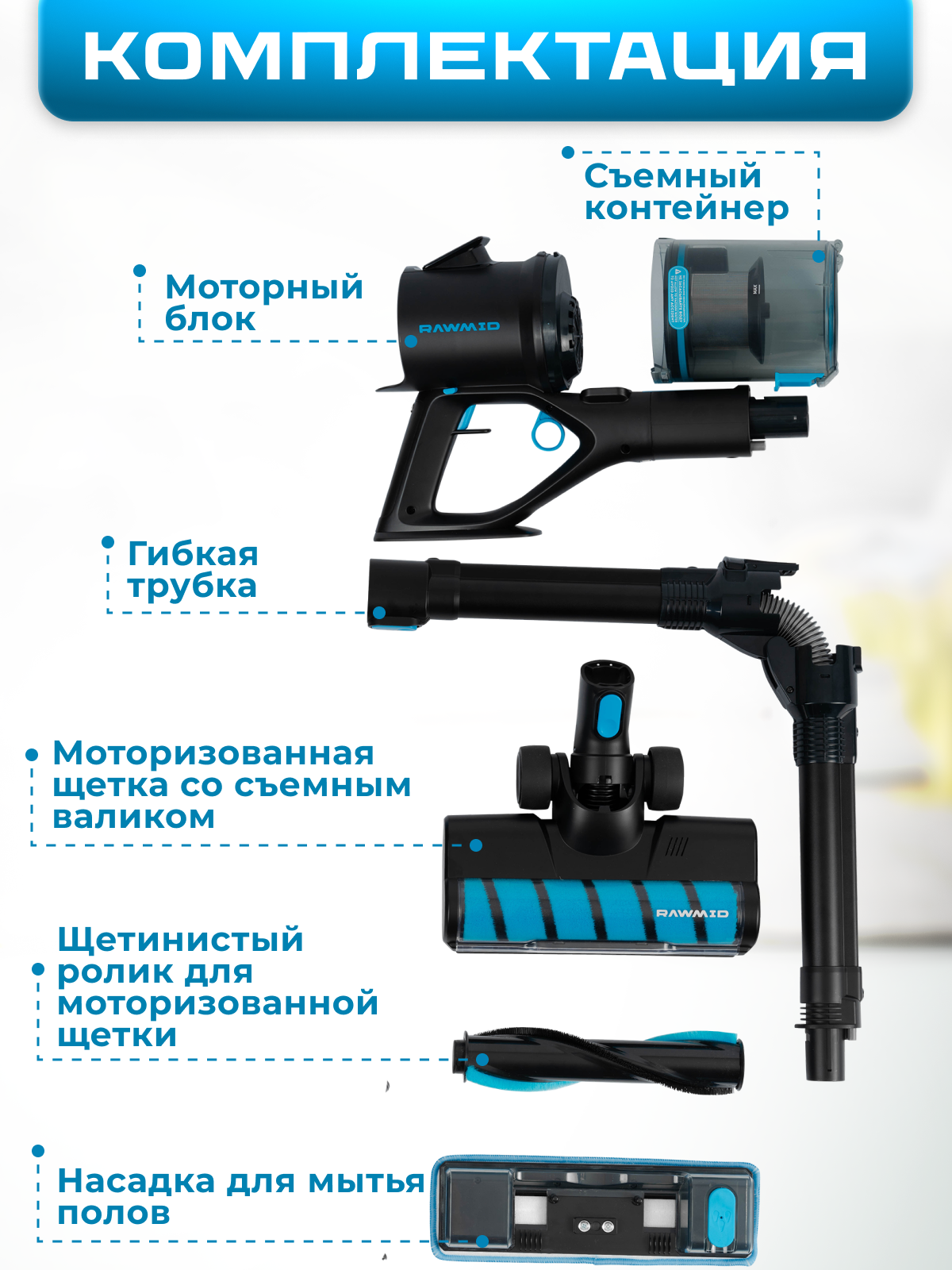 Беспроводной пылесос RAWMID Modern RMV-01 с функцией влажной уборки и гибкой трубкой
