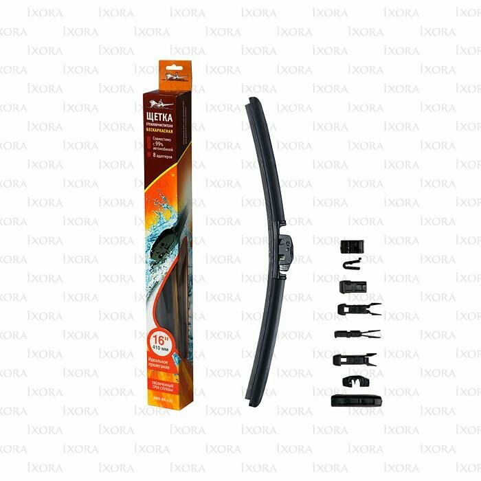 СохранитьЩетка стеклоочистителя 410 мм (16) бескаркасная 10 адаптеров AIRLINE AWB-BK-410 интересное: