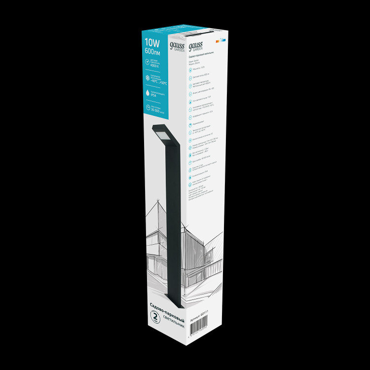 СохранитьСветильник садово-парковый Gauss LED Electra столб, 10W, 600Lm, 4000K, 134x137x780mm, 220-240V / 50Hz, IP54,1/4 интересное: