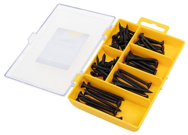 Набор фосфатированных саморезов Kranz для дерева 3.5х20-45 мм в кейсе, 60 шт