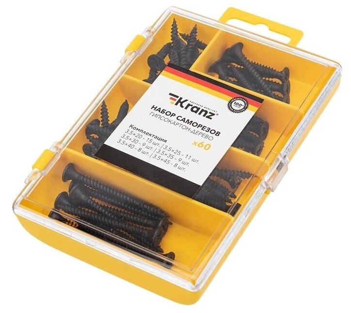 Саморезы по дереву Kranz 3.5х20-45 мм в кейсе, 60 шт интересное: