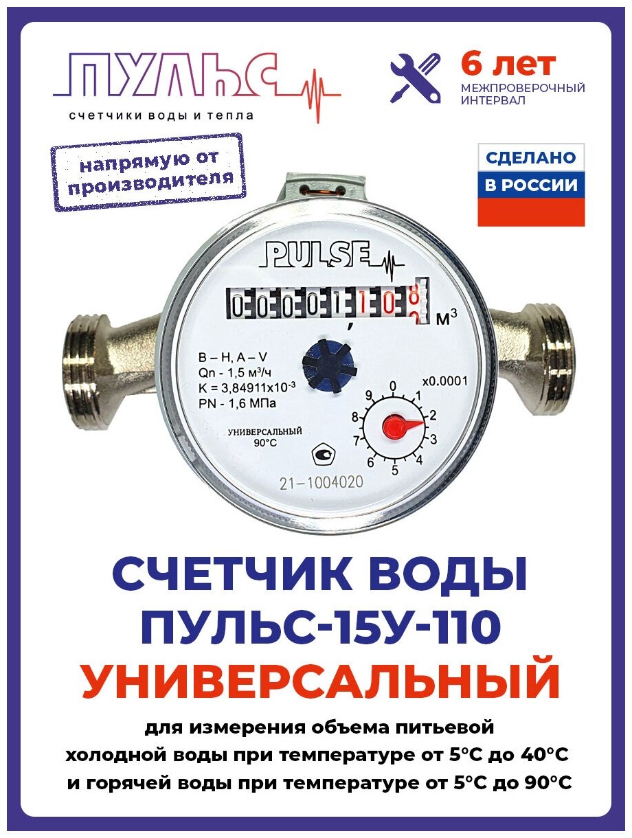 Счетчик воды Пульс 15У-110 универсальный, с КМЧ интересное: