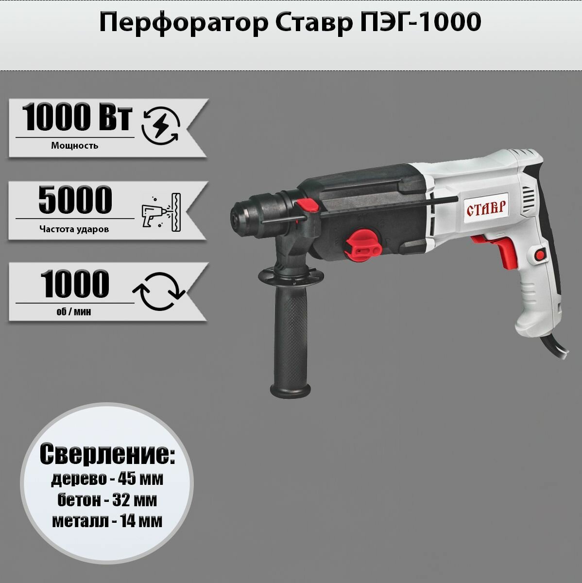 Перфоратор ставр ПЭГ-1000, 1000 Вт интересное: