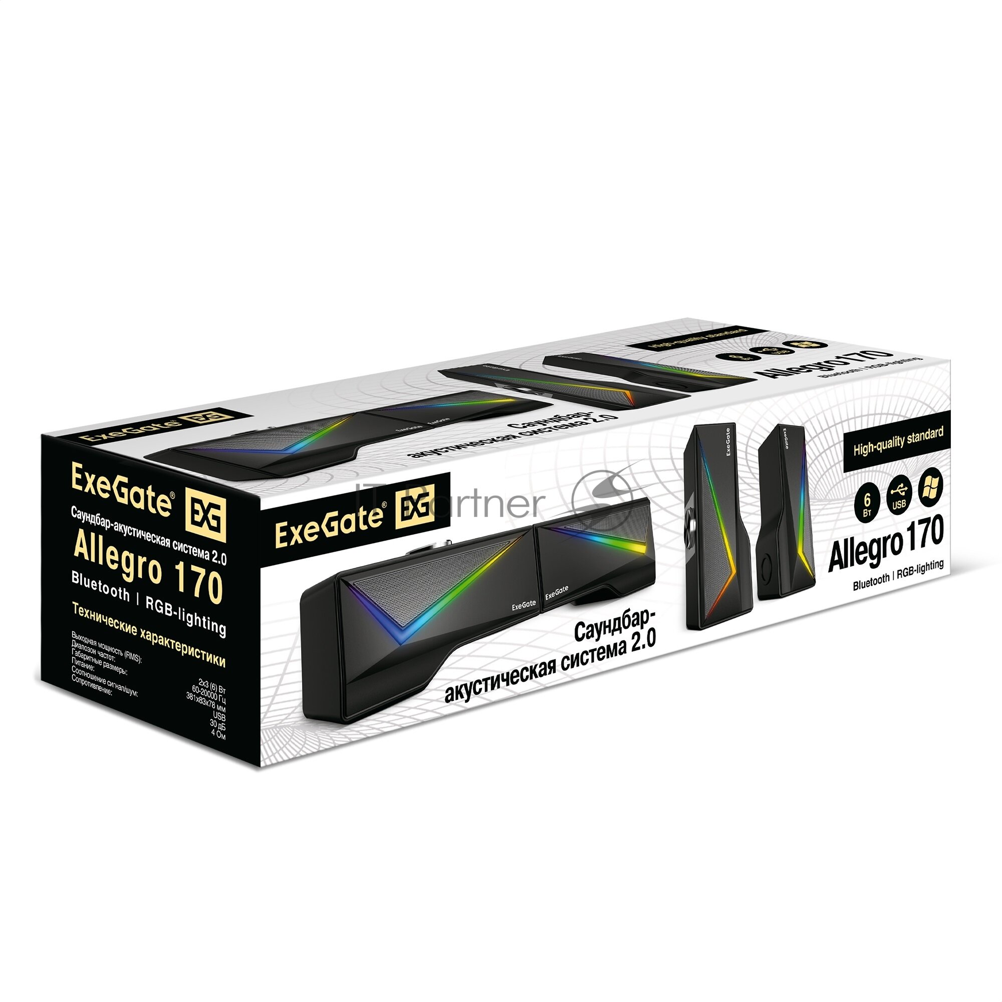 ExeGate Allegro 170 (питание Usb, Bluetooth, 2х3Вт (6Вт Rms), 60-20000Гц, цвет черный, RGB подсветка .