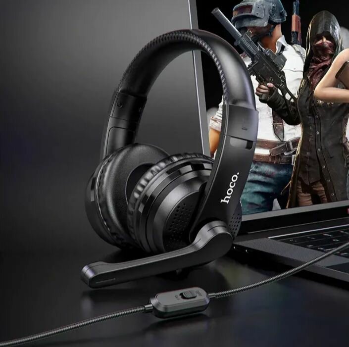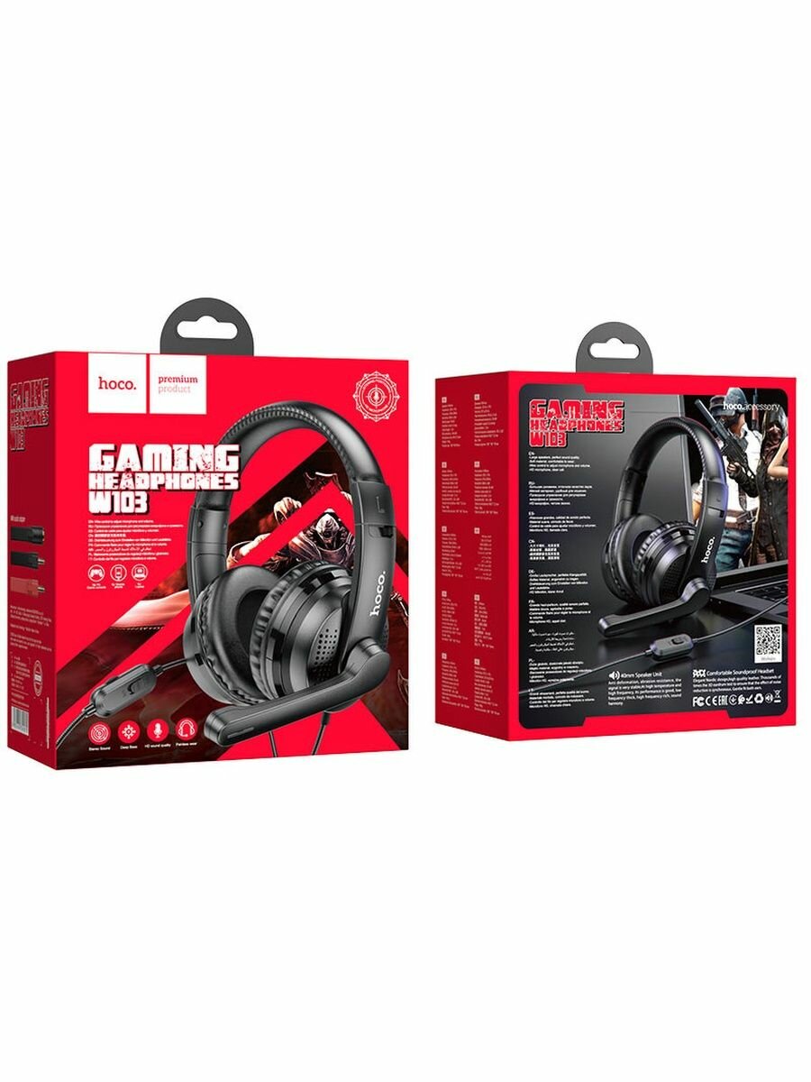 Наушники проводные W103, HOCO, игровые с микрофоном, черные
