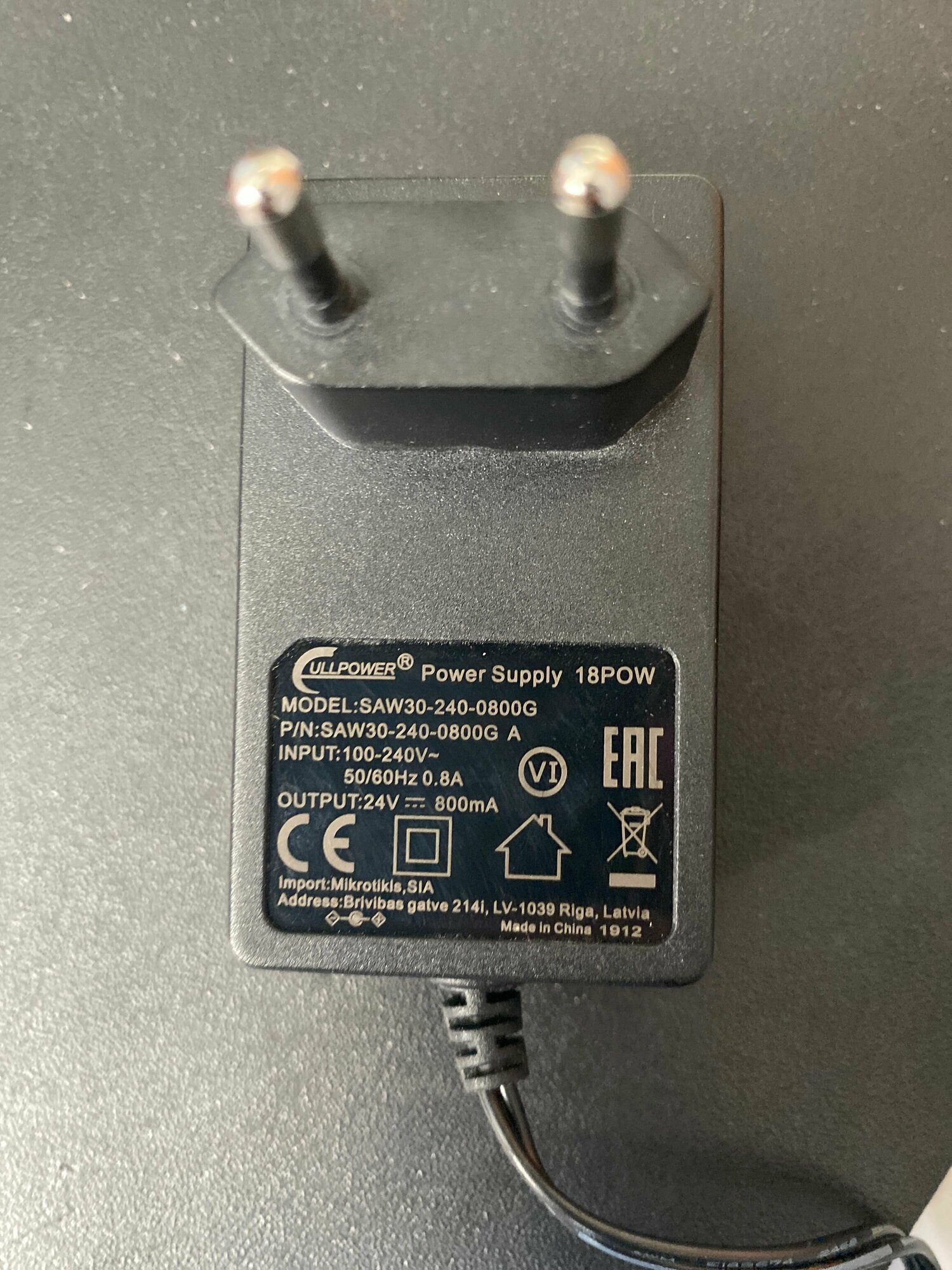 MikroTik 18POW 24V 0.8A power supply