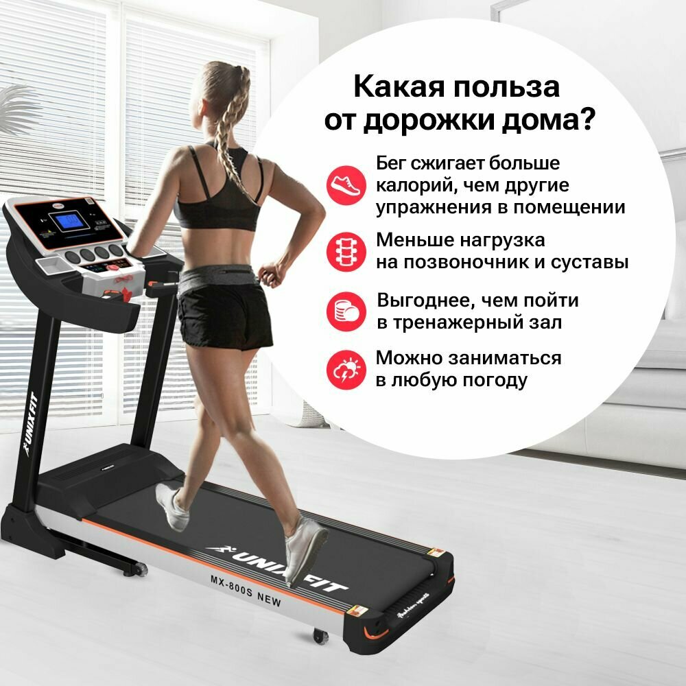 Беговая дорожка домашняя UNIXFIT MX-800S складная, макс. скорость 16.8 км/ч, 15 программ, низкий уровень шума