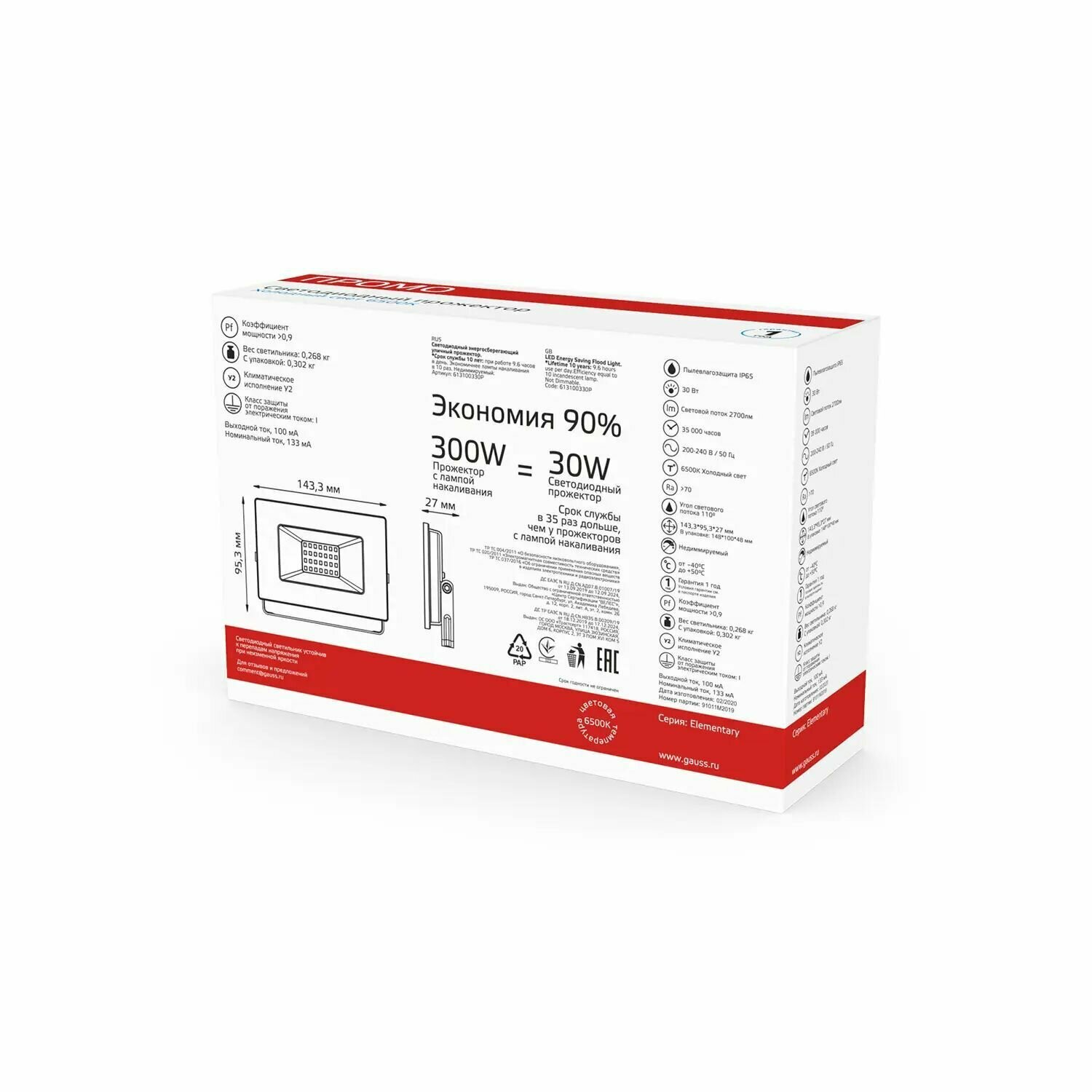 Ниже Вы можете прочитать отзывы на Прожектор светодиодный Elementary 30Вт 2100лм IP65 6500К черн. Промо, GAUSS 613100330P (1 шт.), ознакомится с подробными характеристиками, посмотреть интересные обзоры и фотографии на Прожектор светодиодный Elementary 30Вт 2100лм IP65 6500К черн. Промо, GAUSS 613100330P (1 шт.).