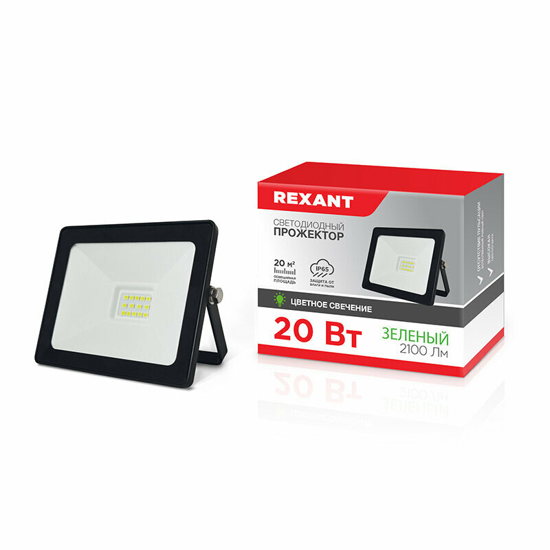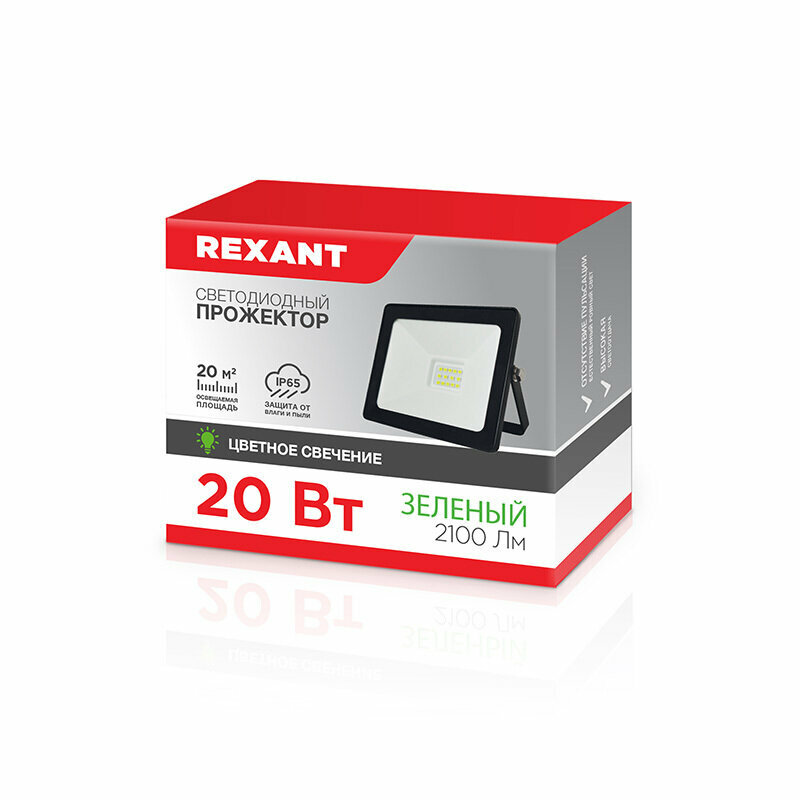 Прожектор светодиодный REXANT 20 Вт, цвет свечения зеленый