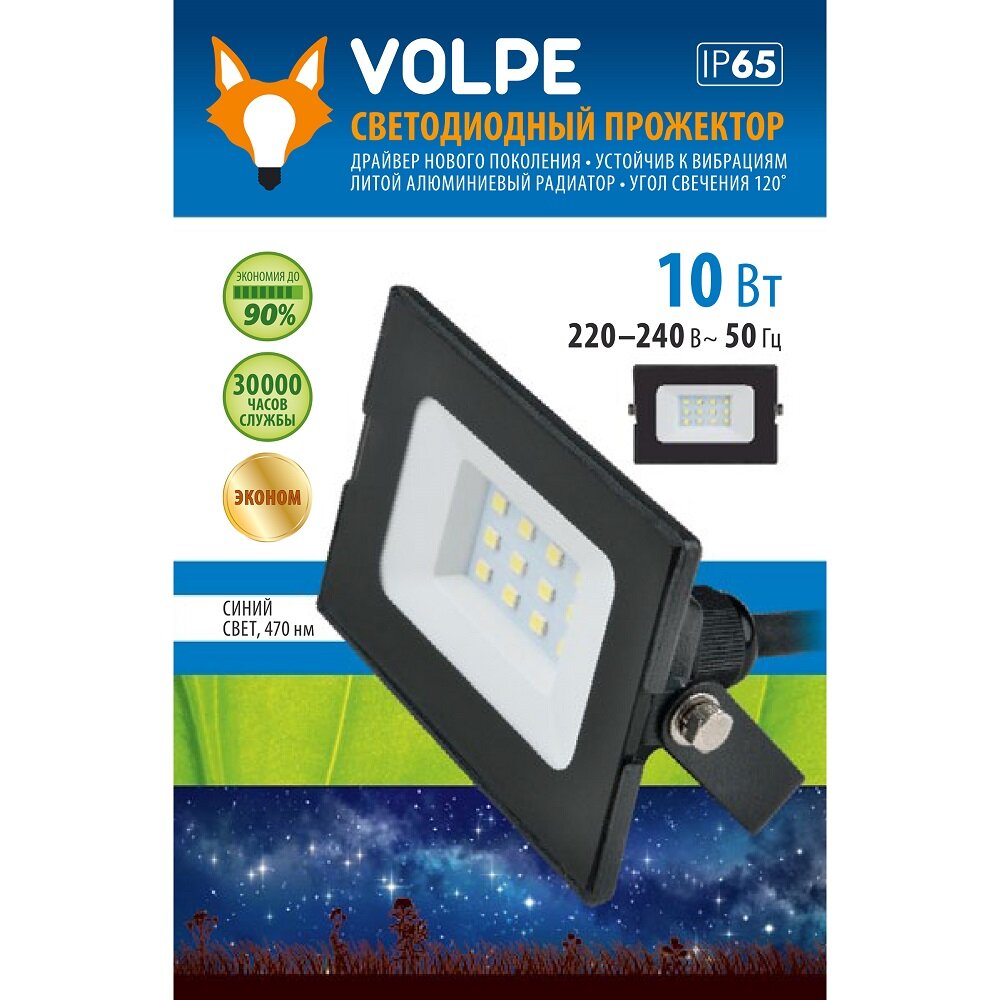 Прожектор светодиодный VOLPE ULF-Q513 (UL-00005812), 10 Вт, синий свет