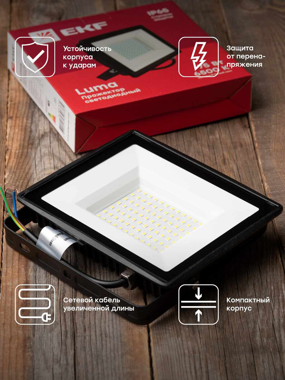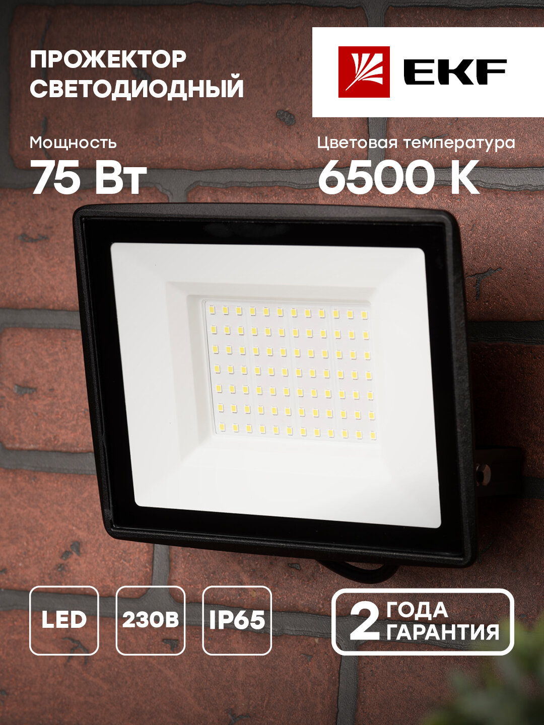 Прожектор светодиодный EKF Basic СДО-3005, 75Вт, 6500К, IP65