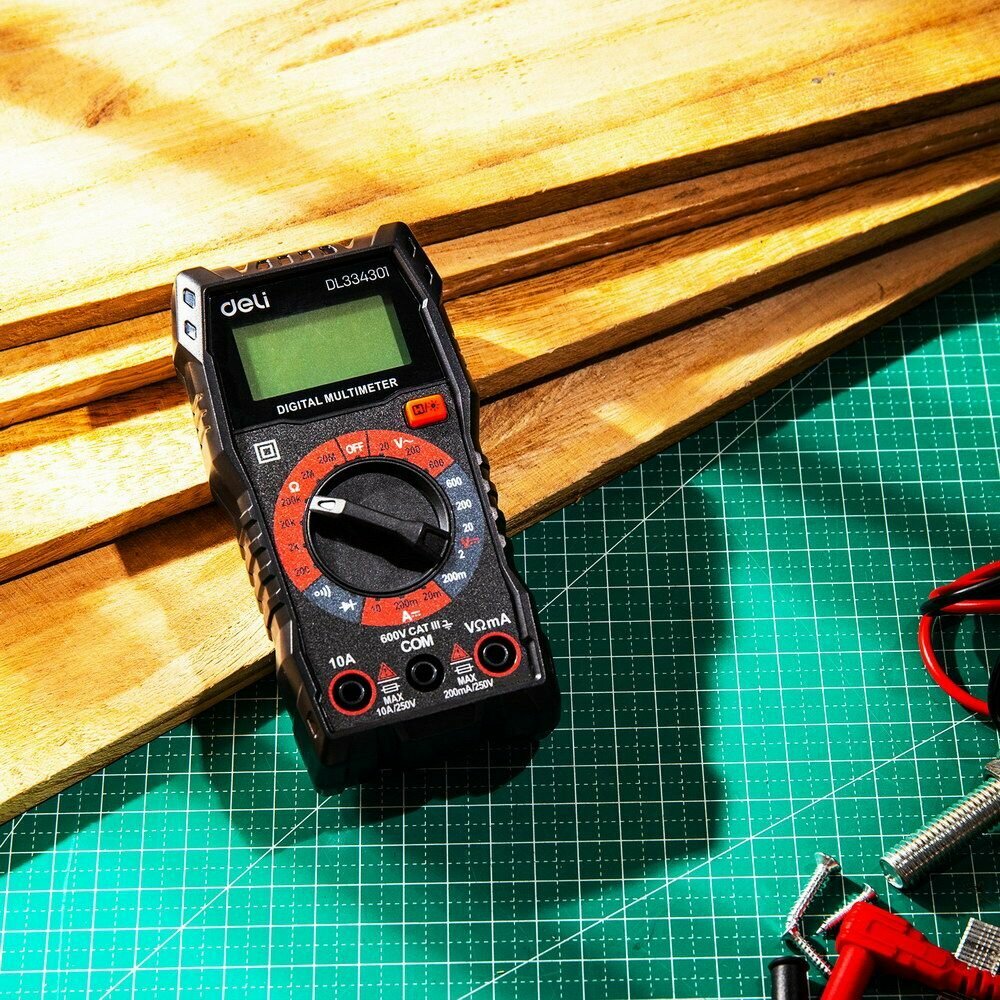 Универсальный цифровой мультиметр Deli DL334301 (до 600В, до 10А, до 20 МОм, ЖК дисплей)