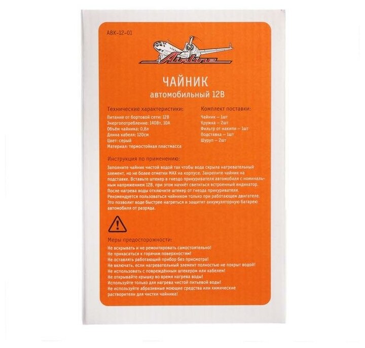 Чайник автомобильный 12В серый пластик AIRLINE интересное: