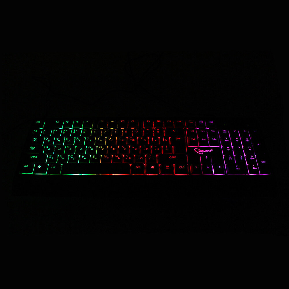 Клавиатура с подсветкой Gembird KB-220L, USB, черный, 104 клавиши, подсветка Rainbow, кабель 1,5 м