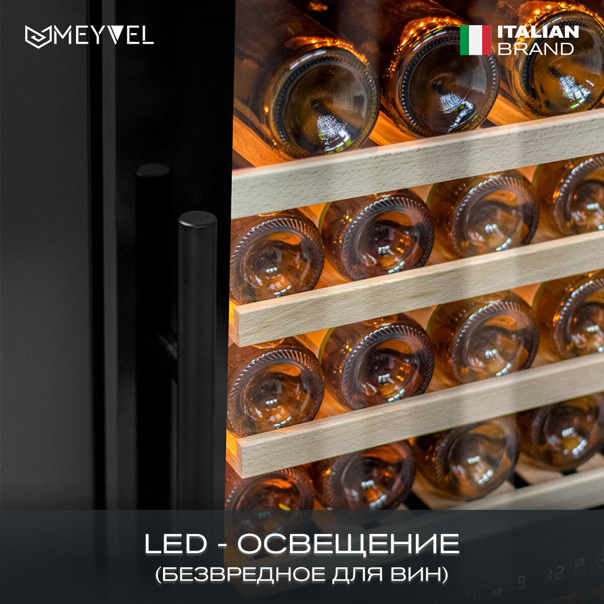 Винный холодильный шкаф Meyvel MV99PRO-KBT2 компрессорный (встраиваемый / отдельностоящий холодильник для вина на 99 бутылок) интересное: