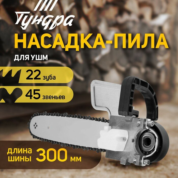 Насадка для УШМ тундра, цепная пила, 300 мм 11.5", 45 звеньев, 1.3 мм, шаг 3/8", M10 и М14, TUNDRA