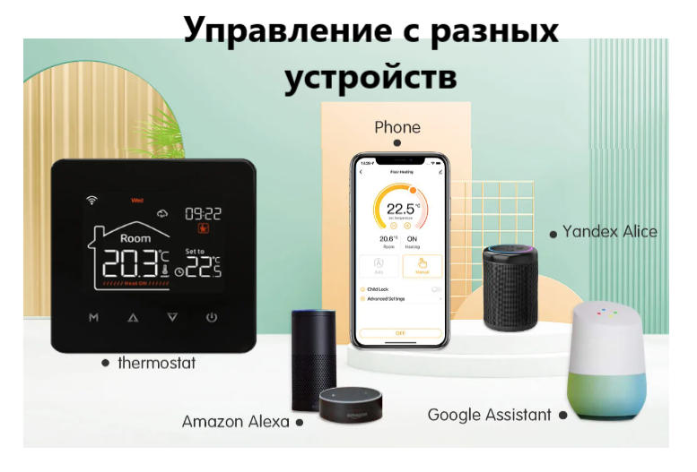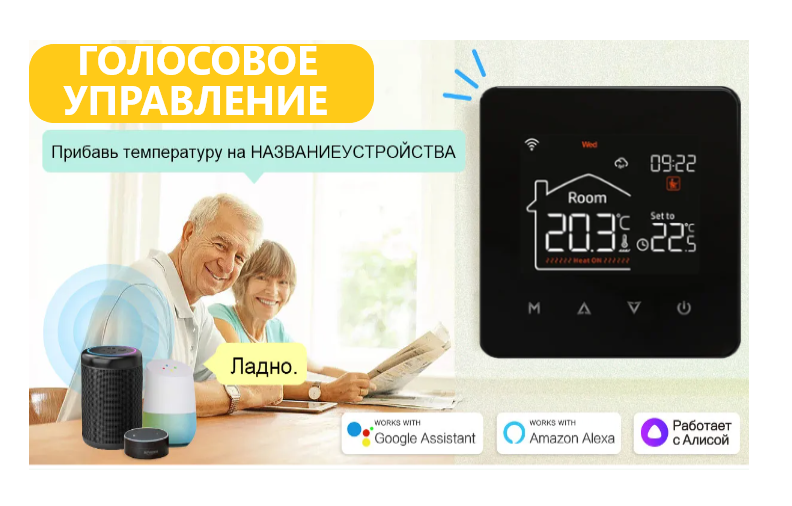 Умный термостат для теплого пола Wi-Fi 16А Black, с голосовым управлением / совместим с Google Assistant, Amazon Alexa интересное: