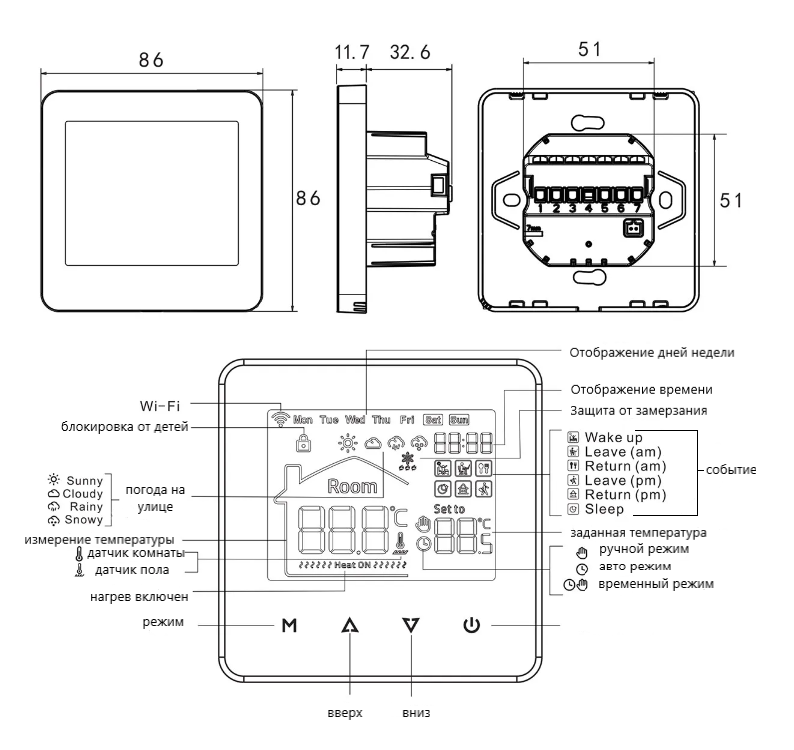 | Регулирование температуры теплого пола | есть |