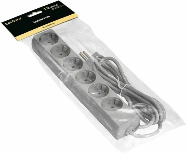 Удлинитель ExeGate ECE-6-1.8G (6 евророзеток с заземлением, 1.8м, серый)