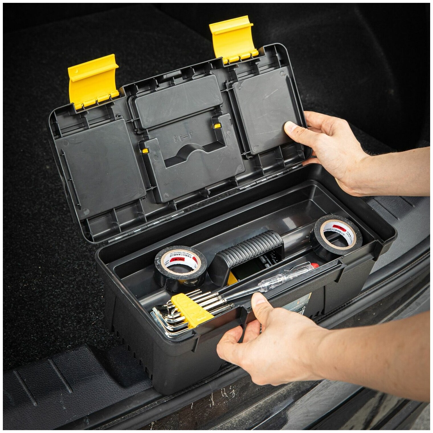 Ящик с органайзером Deli Tools DL432413, 33x16x12.5 см, 13'' , черный