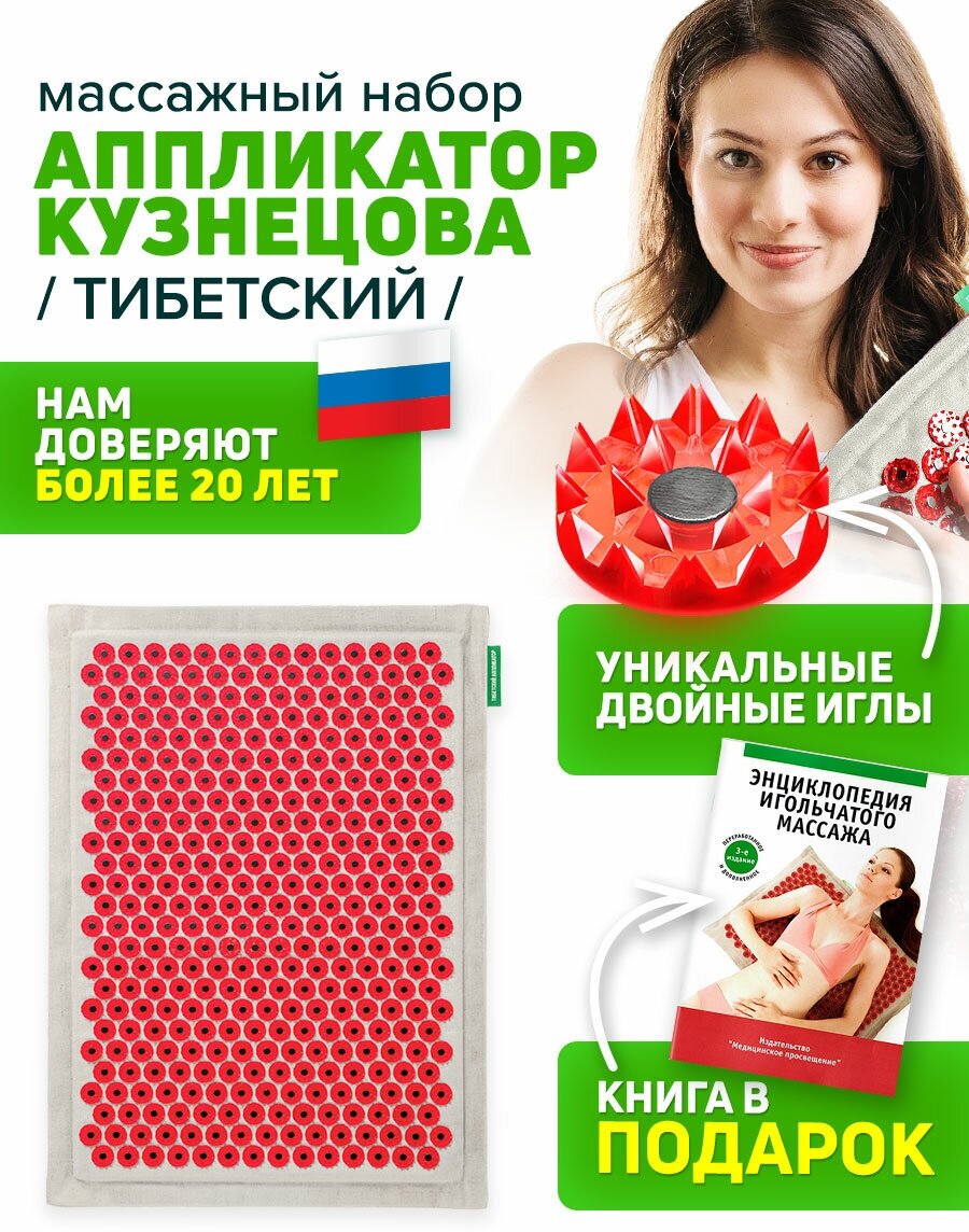 Массажер Лаборатория Кузнецова "Тибетский аппликатор" игольчатый коврик, красный, 41х60 см