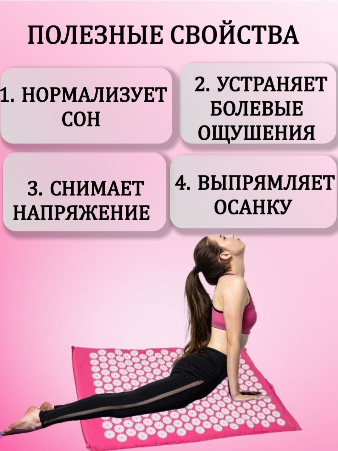 Аппликатор Кузнецова Массажный коврик акупунктурный / Игольчатый + подушка + сумка / комплект 3 в1 (розовый) интересное: