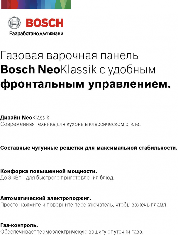 Газовая варочная панель Bosch Pgp6b3b92r .
