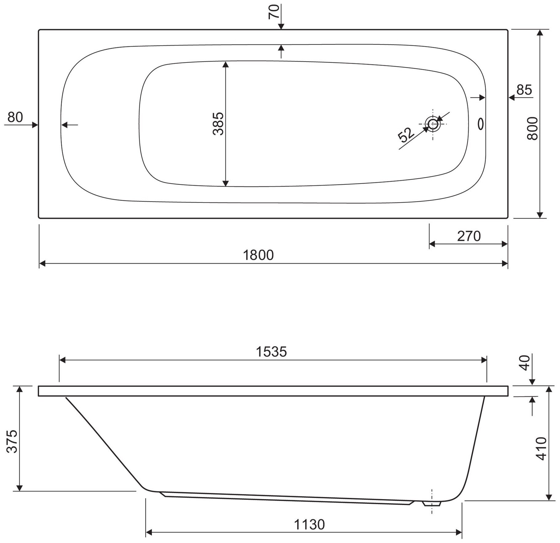 Акриловая ванна Cezares Eco ECO-180-80-41-W37