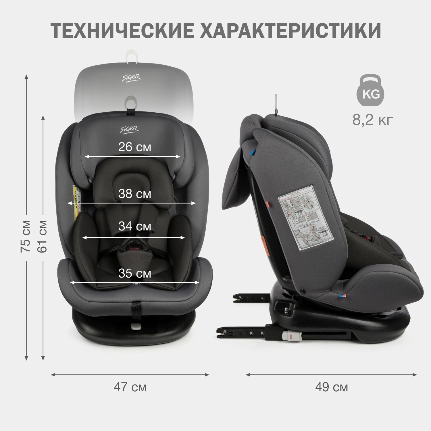 кресло детское siger престиж isofix группа 0,1,2,3 графит