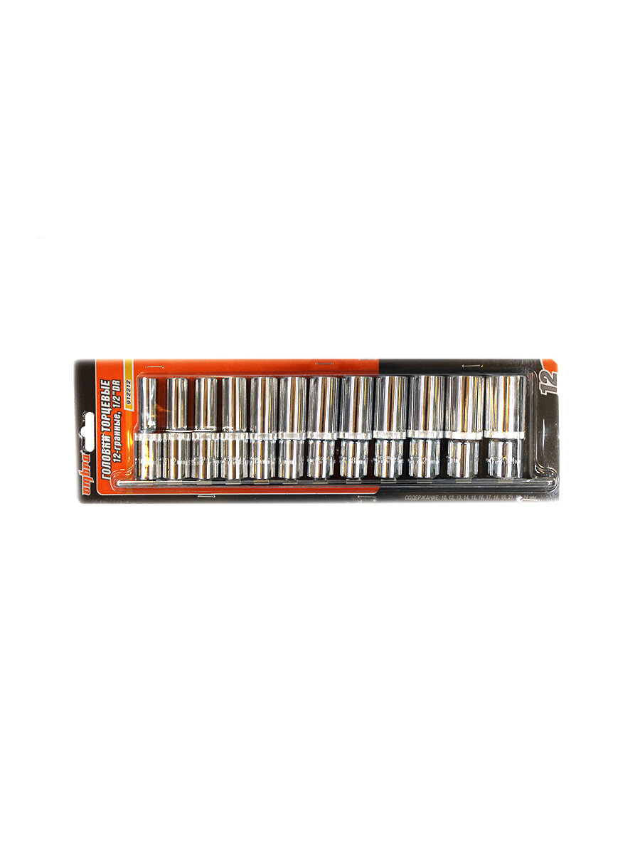 | Головки торцевые подробно | 1/2": 10, 12, 13, 14, 15, 16, 17, 18, 19, 21, 22, 24 мм |