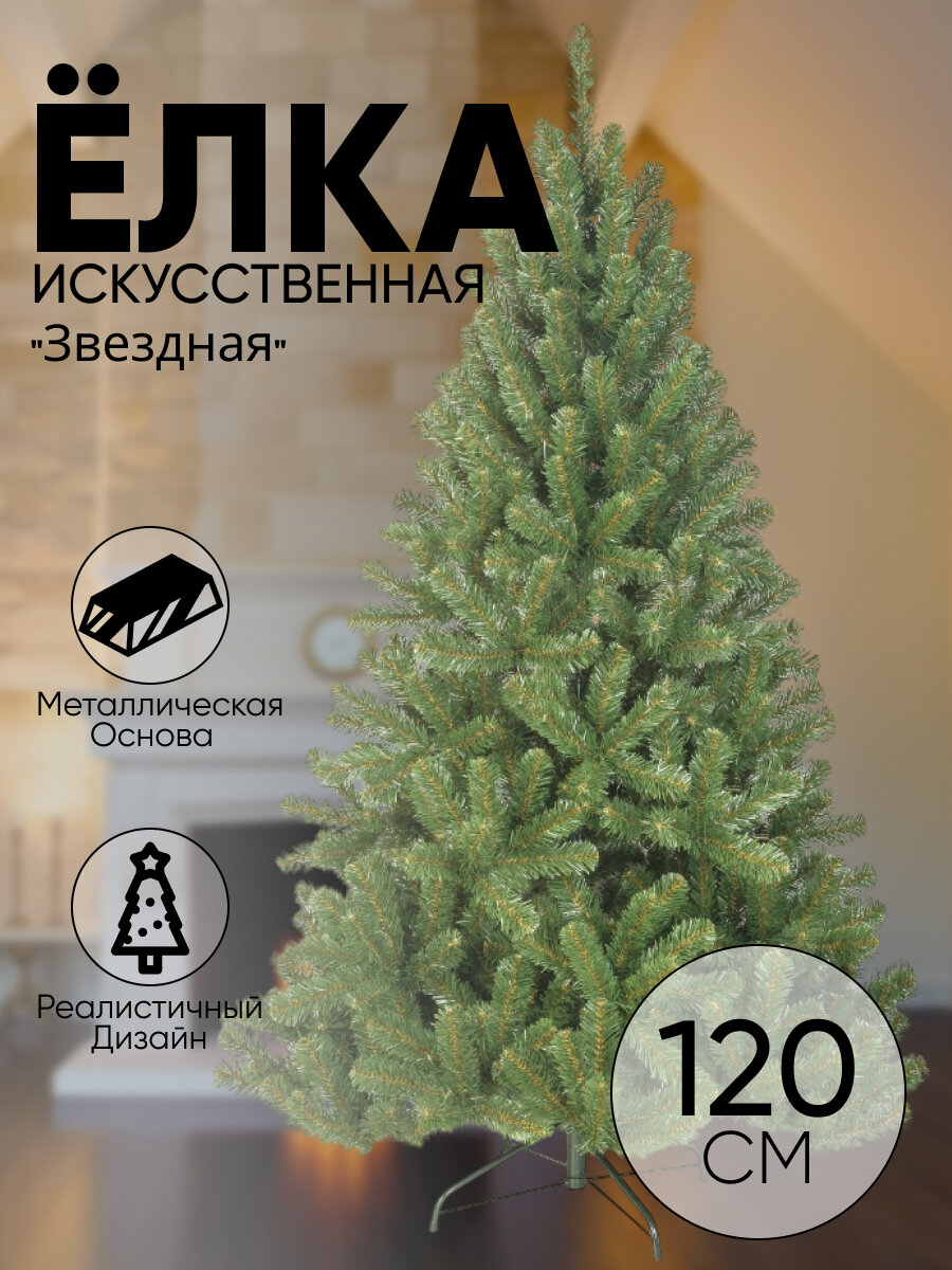Елка новогодняя 120 см, Звездная, сосна, зеленая, хвоя ПВХ пленка, 10120803, ЕлкиТорг
