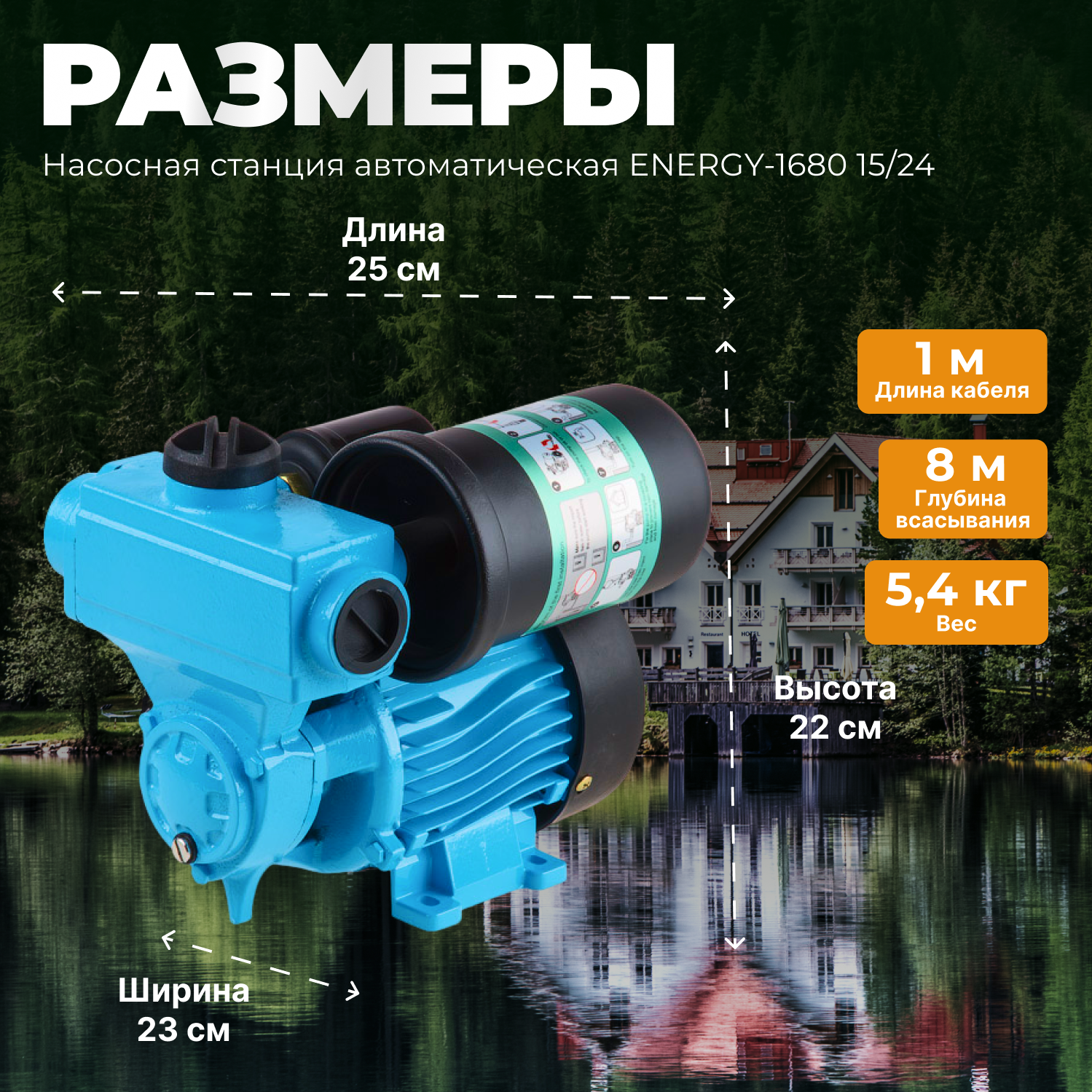 Станция водоснабжения автоматическая ENERGY-1680 15/24 AV Engineering (210 Вт, 1680 л/ч, 24 м, корпу .