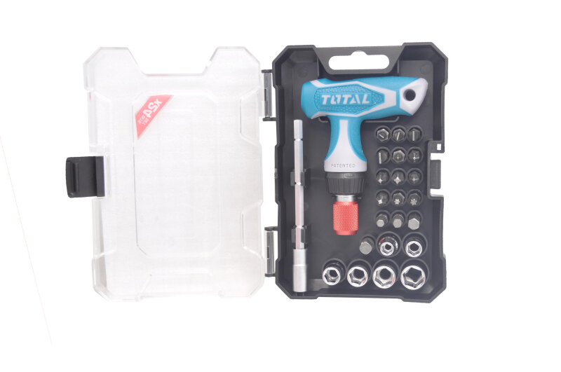 Отвертка Т-образная реверсивная с насадками 24 шт, TOTAL