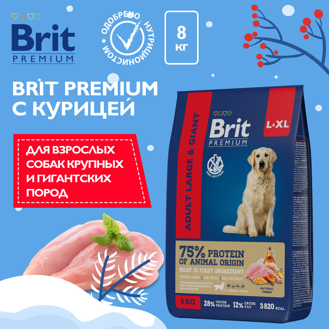 Сухой корм BRIT PREMIUM DOG ADULT LARGE & GIANT для взрослых собак крупных и гигантских пород с курицей (8 кг)