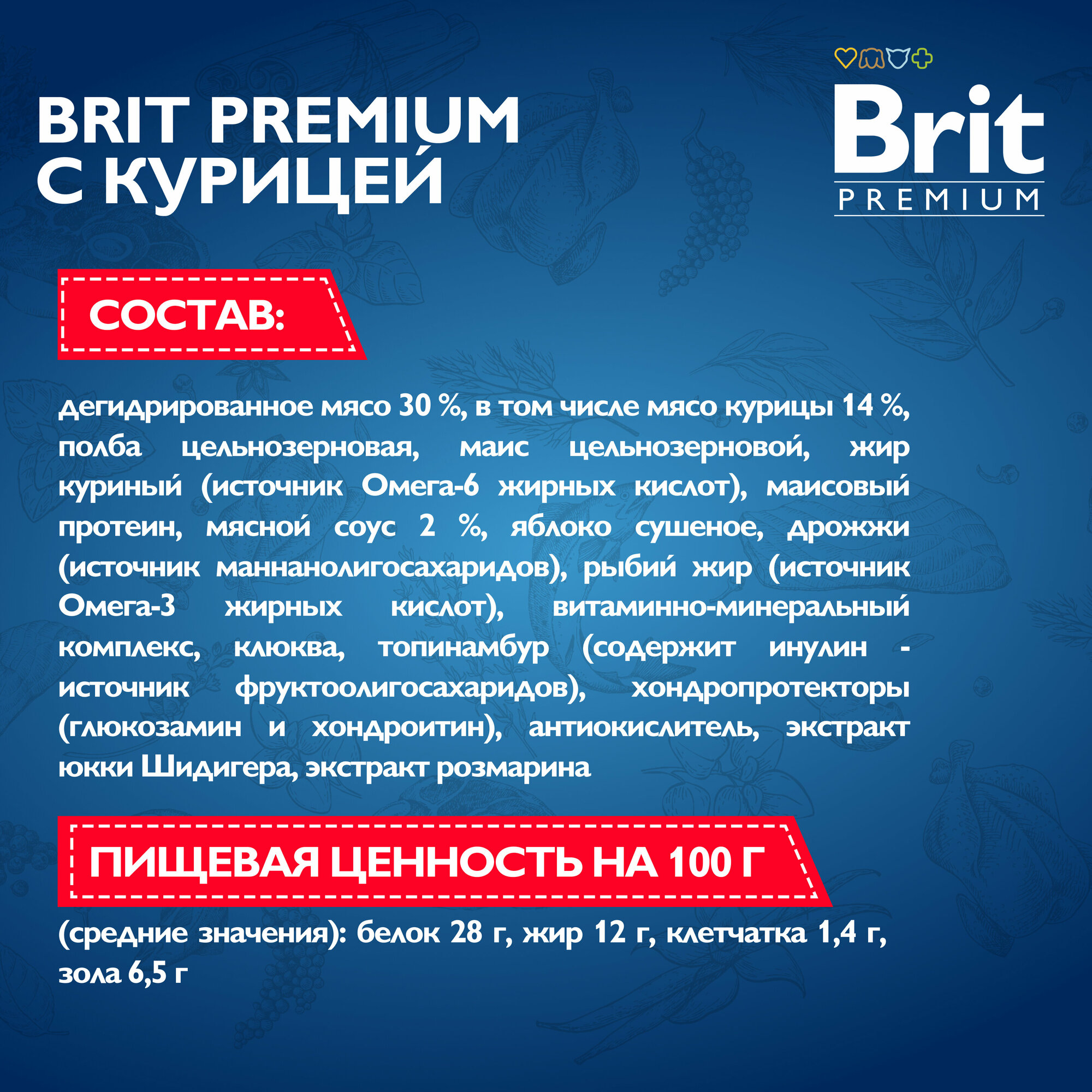 Сухой корм для взрослых собак Brit Premium, курица 8 кг (для средних и крупных пород)