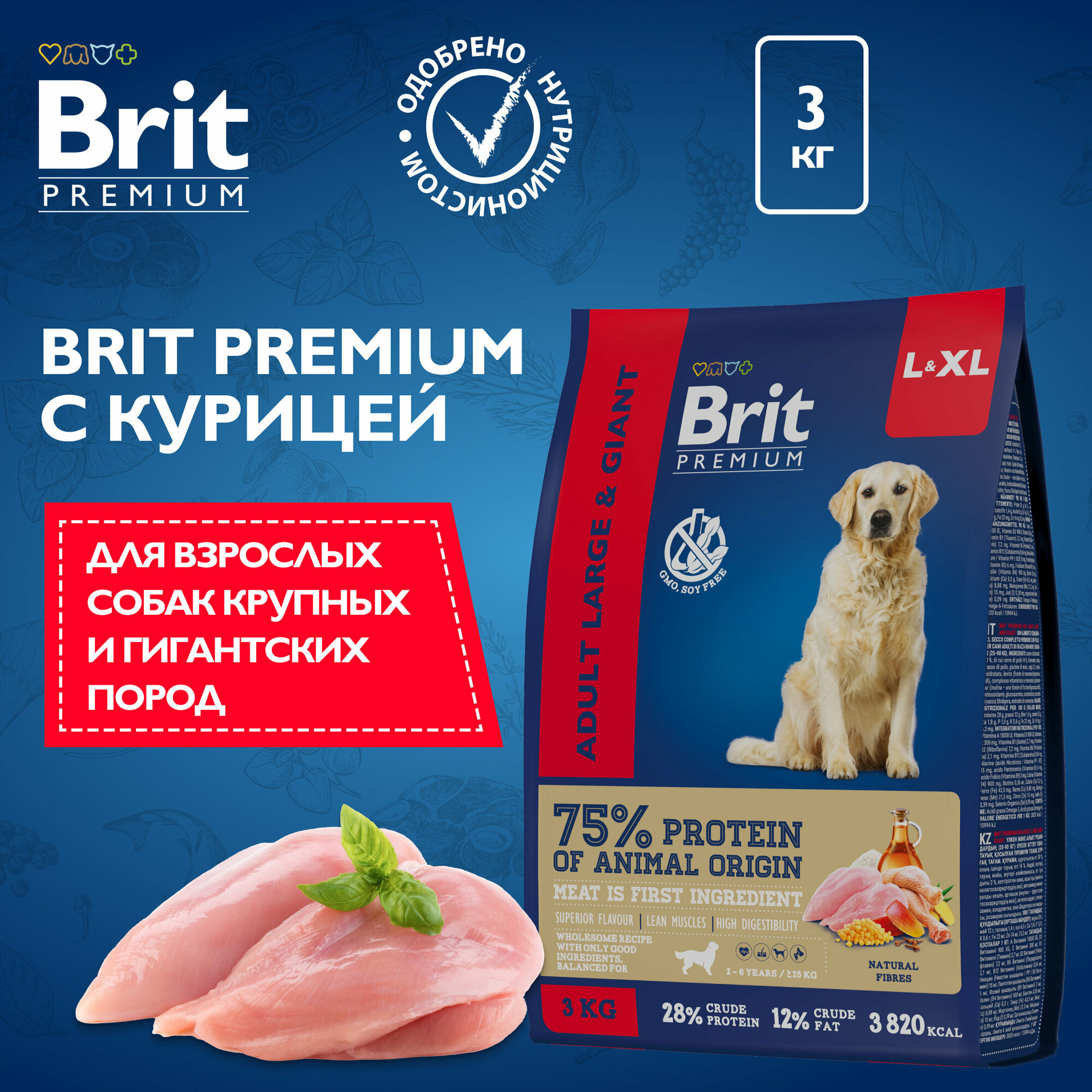 Сухой корм для собак Brit Premium Adult Large and Giant L+XL, курица 3 кг (для крупных пород)