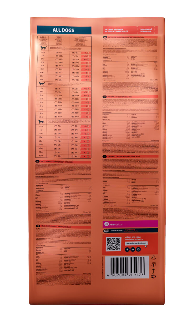 All Dogs для взрослых собак с говядиной и овощами (упаковка: 20 кг., вес: 20)