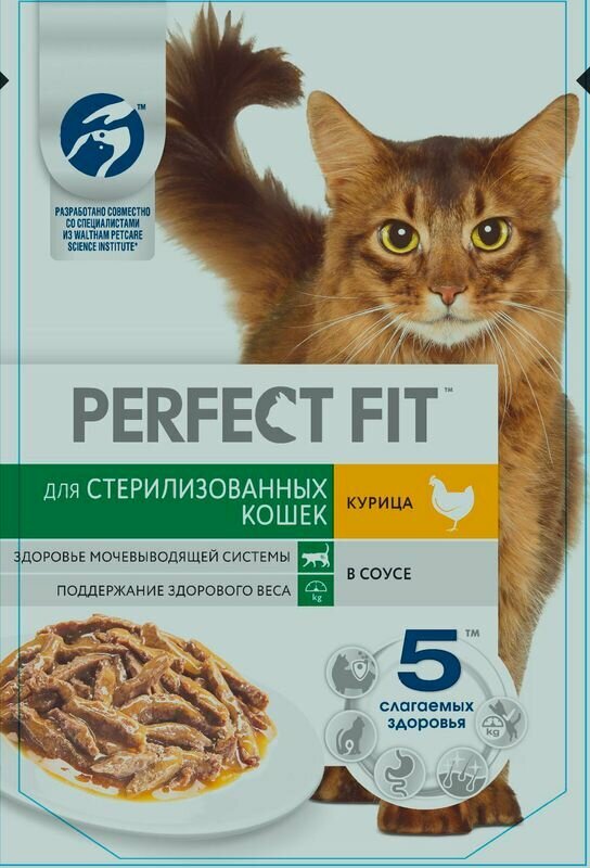 Купить Влажный корм Perfect Fit для стерилизованных кошек, курица в соусе, 75 г