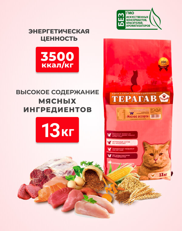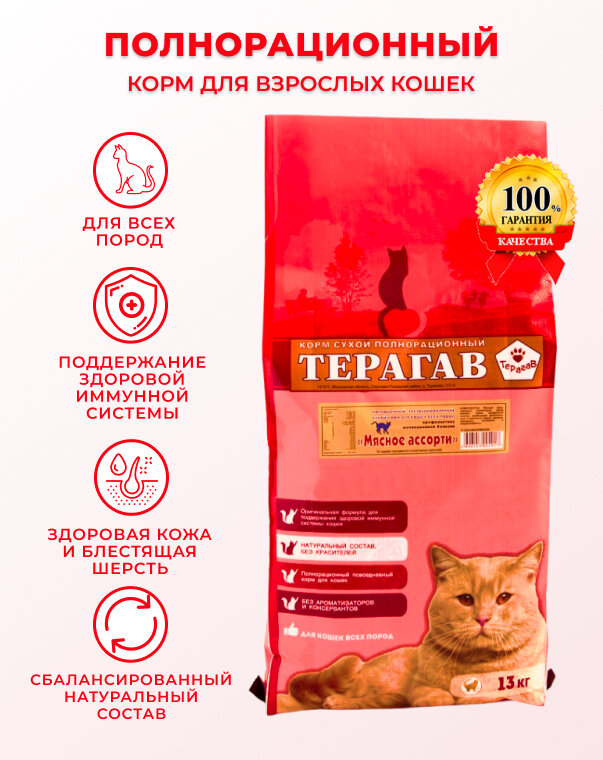 Сухой корм терагав мясное ассорти для взрослых кошек (13 кг)