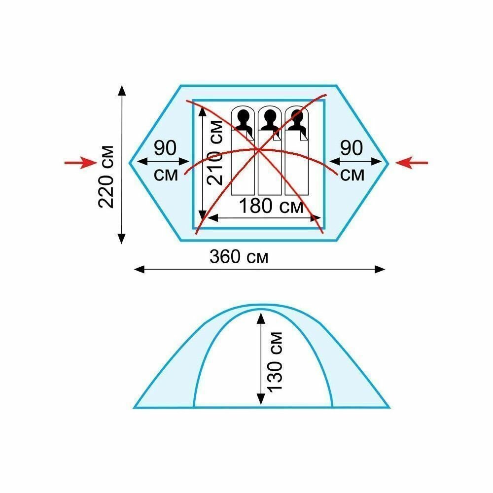 | Габариты внешней палатки(ДxШxВ) | 360x220x130 cм |