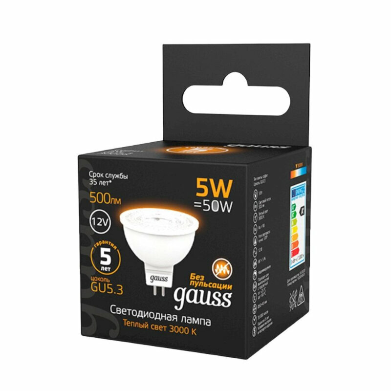 Gauss Лампа MR16 12V 5W 500lm 3000K GU5.3 LED