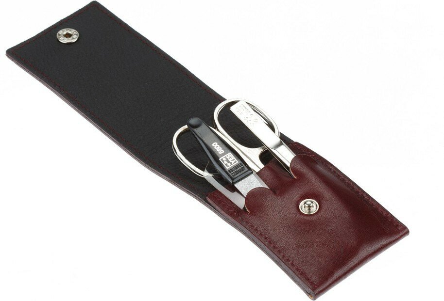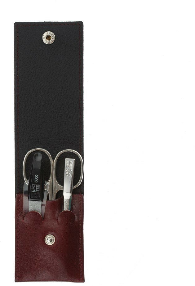Маникюрный набор YES, 3 пр. Футляр: натуральная кожа, цвет бордово-красный