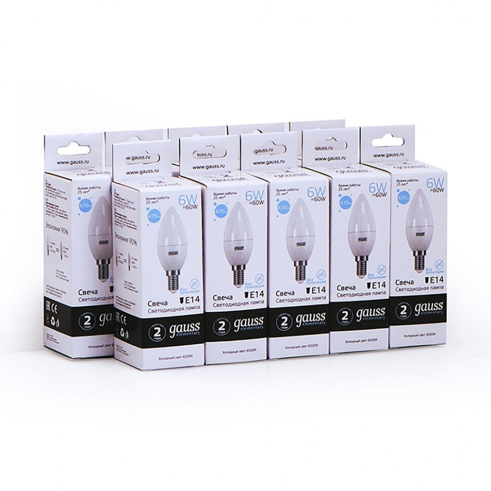Светодиодная лампа Gauss LED Elementary Candle 6W E14 6500K 1/10/100