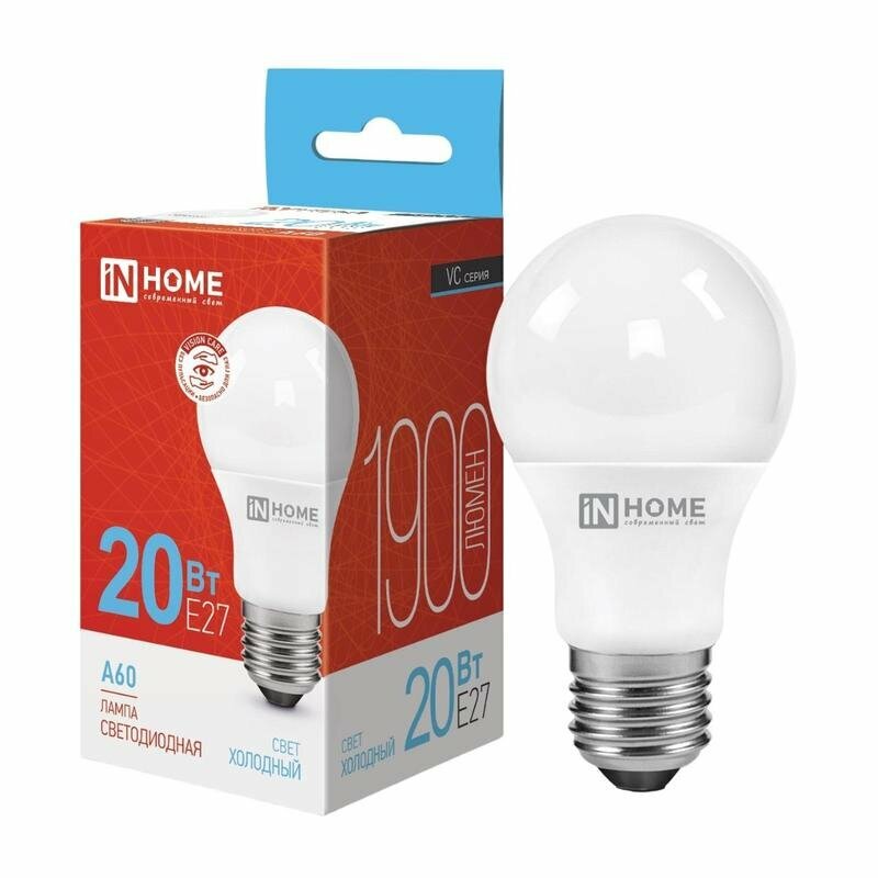 Лампа светодиодная IN HOME LED-A60-VC, Е27, 20 Вт, 230 В, 6500 К, 1900 Лм
