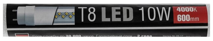 Светодиодная лампа LED T8 600мм G13 10W 800Лм, 4000К, нейтральный свет REV 32390 7