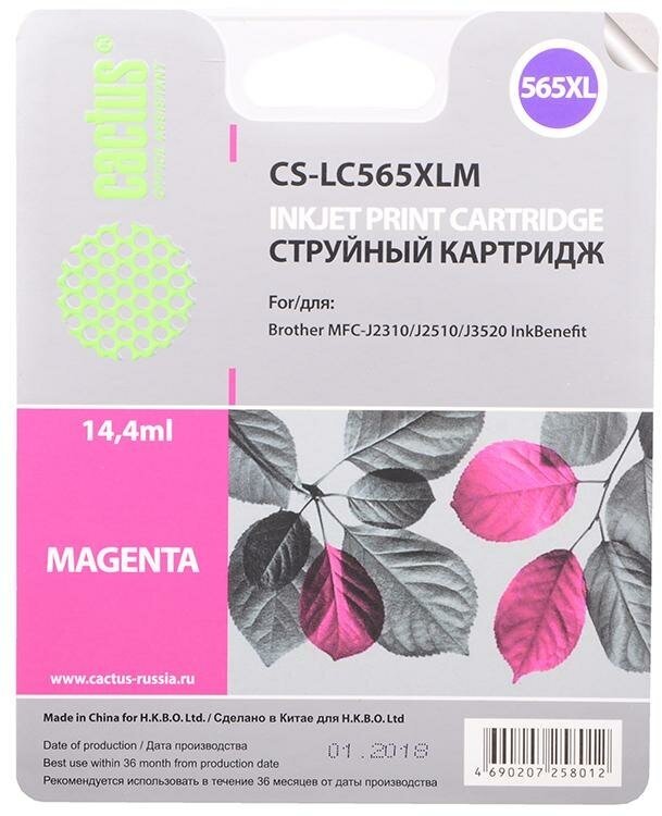 Картридж струйный Cactus CS-LC565XLM пурпурный (14.4мл) для Brother MFC-J2510