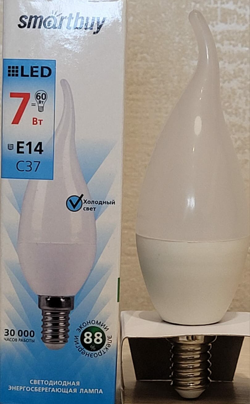 Светодиодная LED лампа Smartbuy E14, 550 люмен, 4000К, 7Вт, 160-240В SBL-C37Tip-07-40K-E14 интересное: